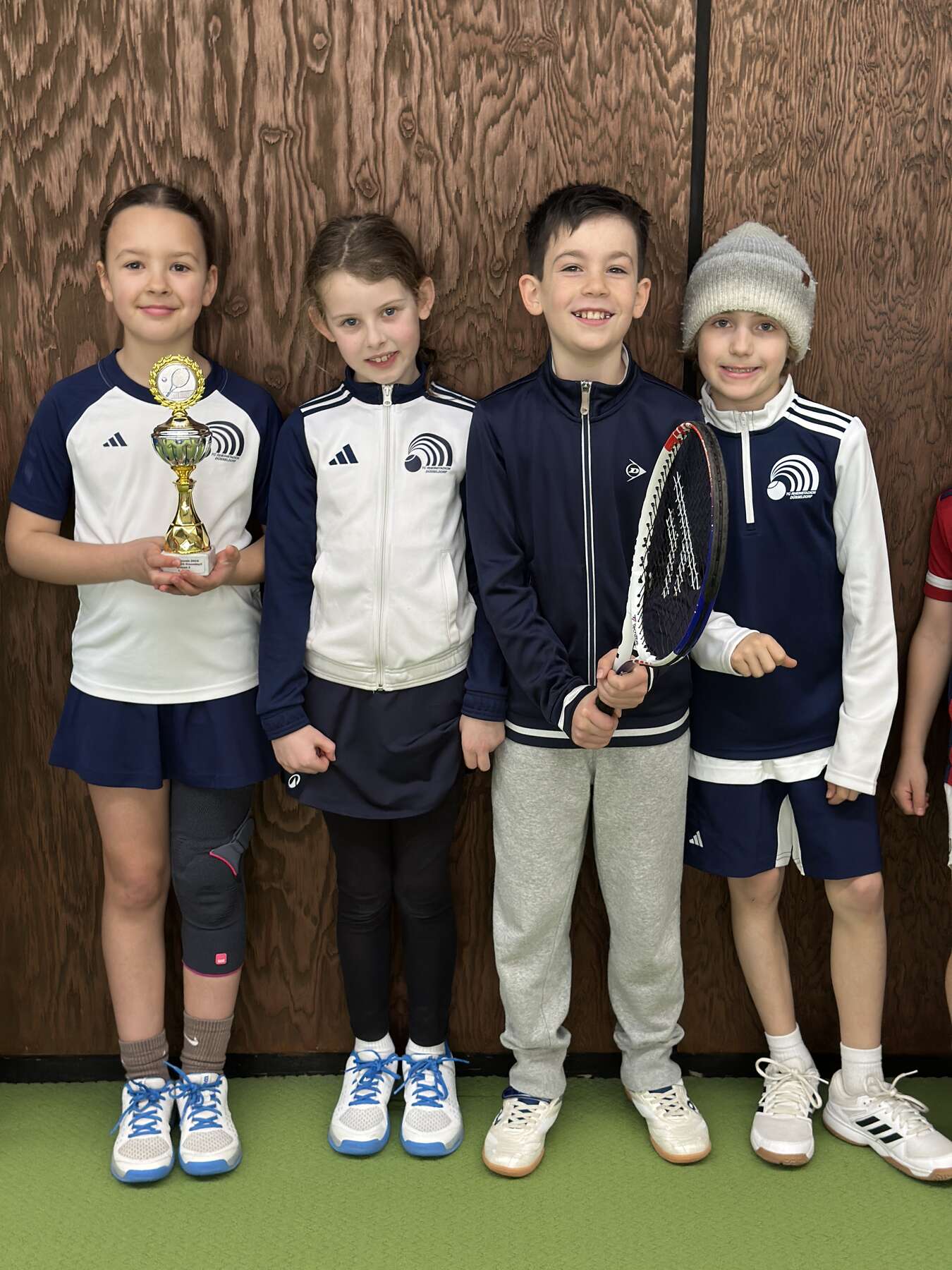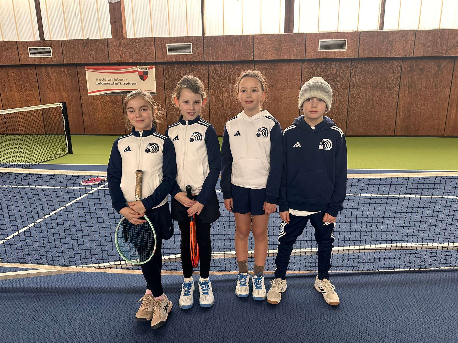 Gespielt haben Ferdinand, Bennet, Friederike, Jakob, Selina und Miklos. Zur Mannschaft gehört außerdem Leo. Auf dem Foto mit den heutigen Glücksbringern Sophie und Valentin.