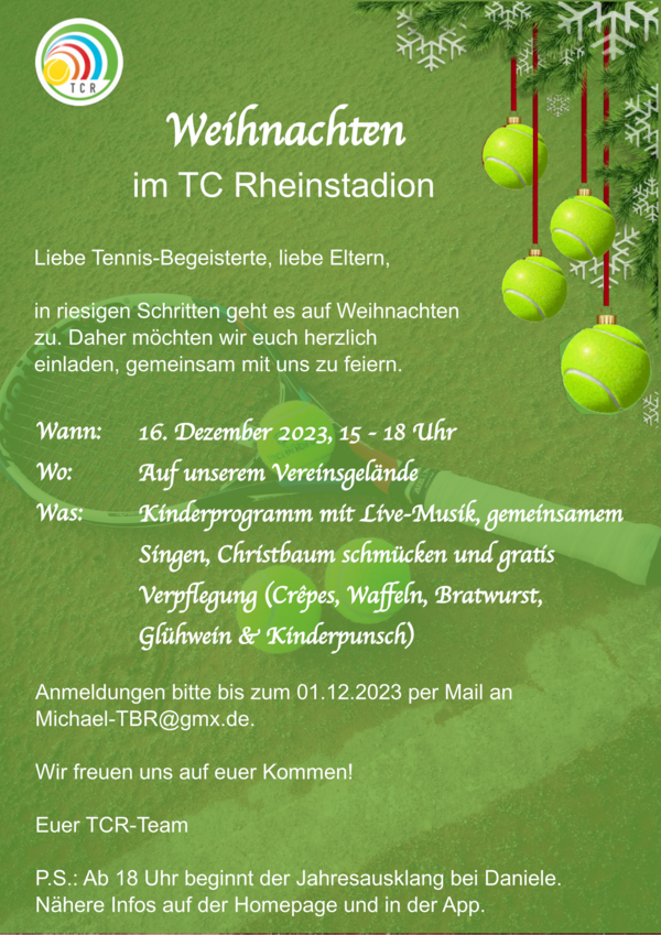 Wir freuen uns darauf mit euch 2 weihnachtliche Stunden auf der Terrasse im TC Rheinstadion zu verbringen ❄️🎄🎅🏻❤️🌟☃️🌭🎁❄️