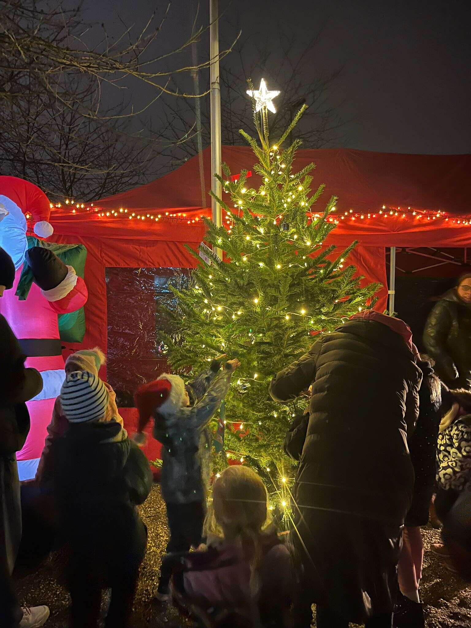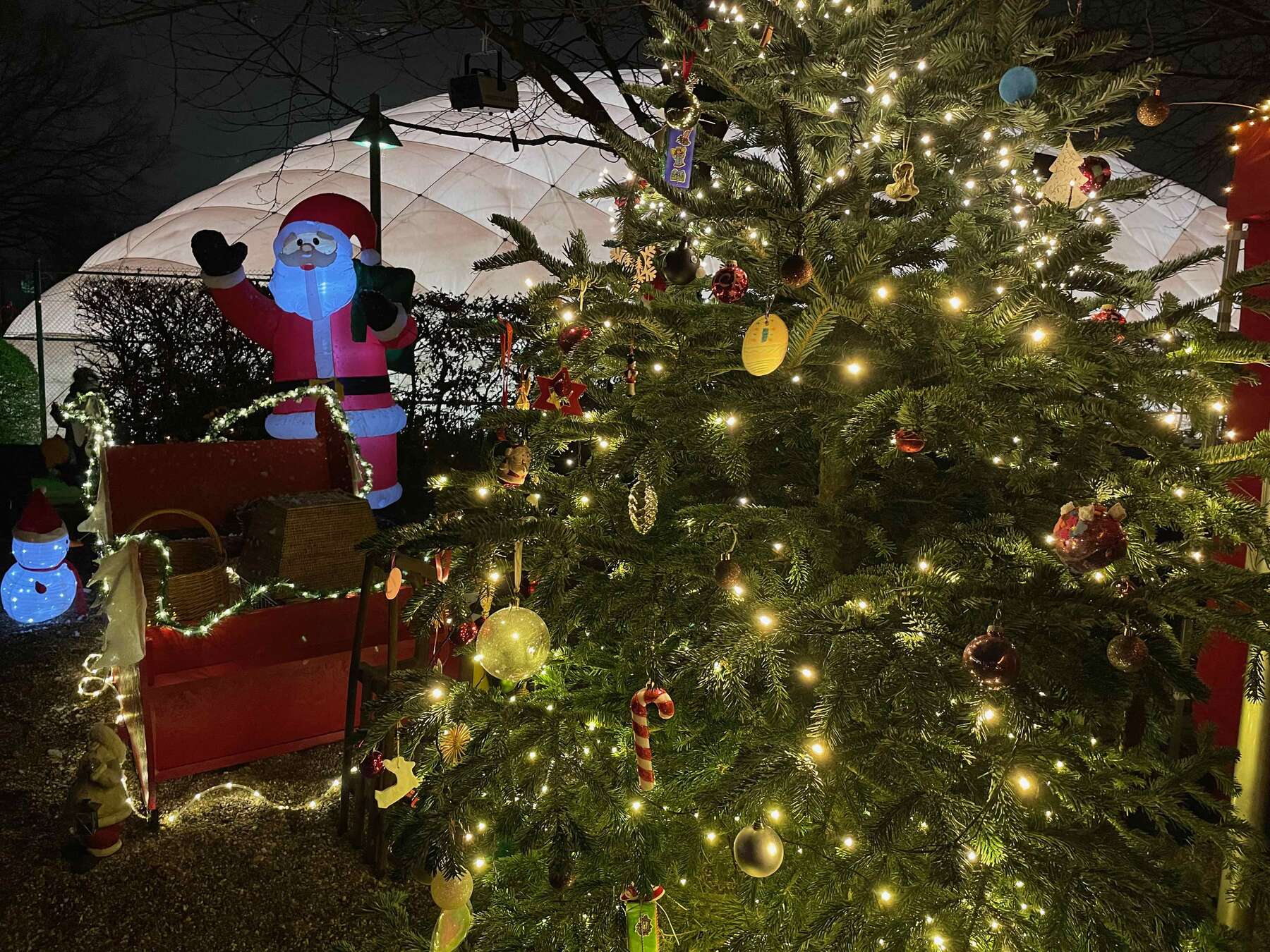 Wir bauen für euch wieder einen kleinen Weihnachtsmarkt mit schöner Beleuchtung auf.