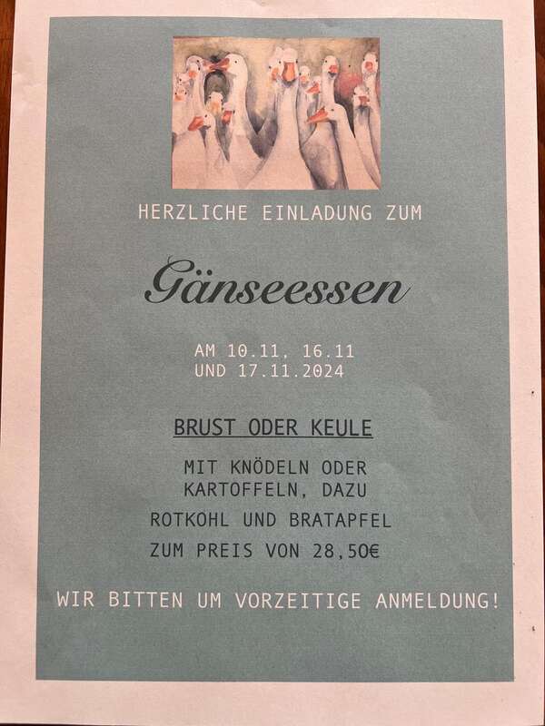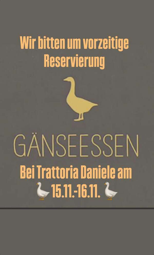 Am 15. November und am 16. November gibt es bei Trattoria Daniele das traditionelle Gänseessen.