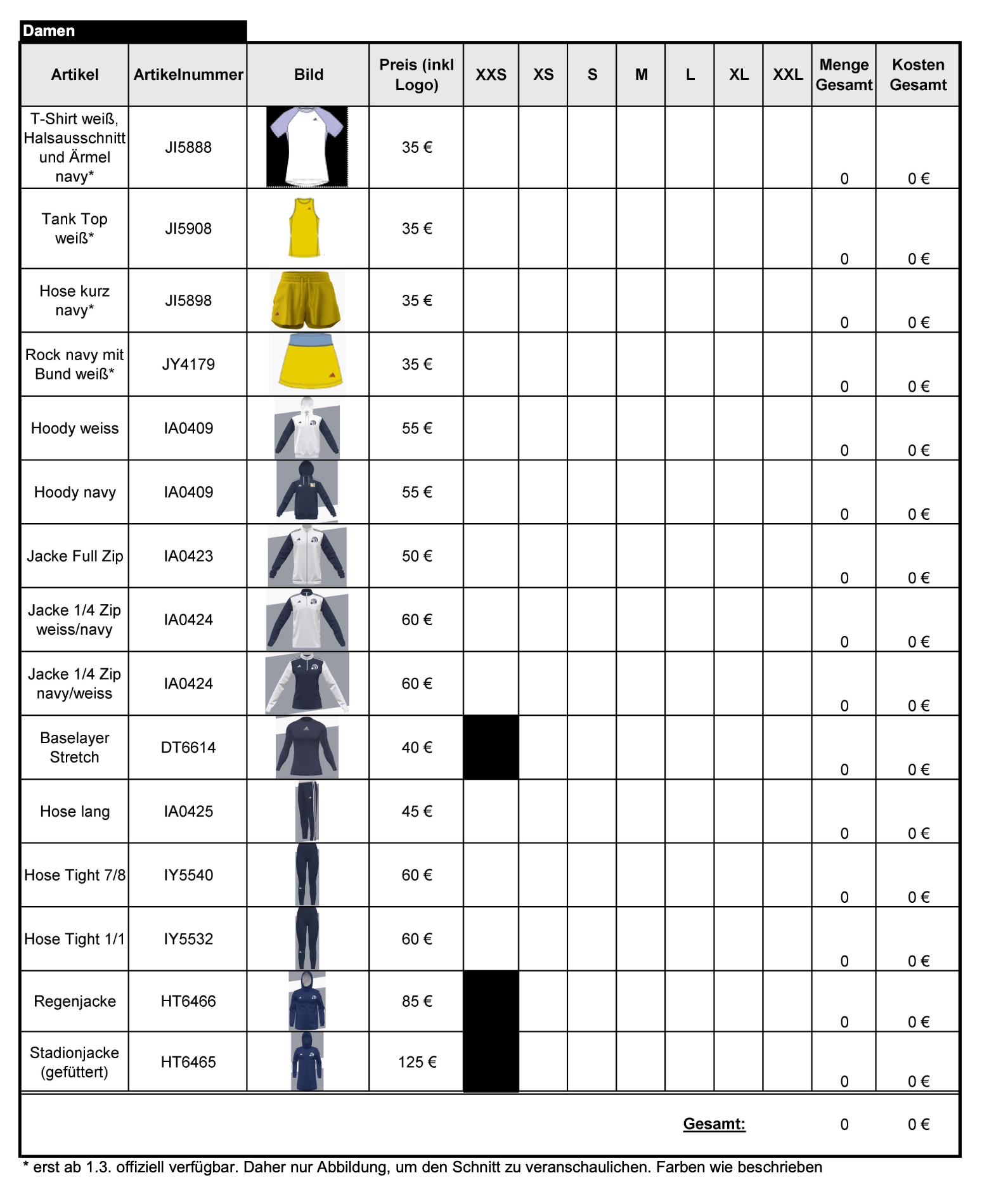 Bestellung Vereinskleidung TCR ab Feb 2026 - Erwachsene – Formular ausfüllen