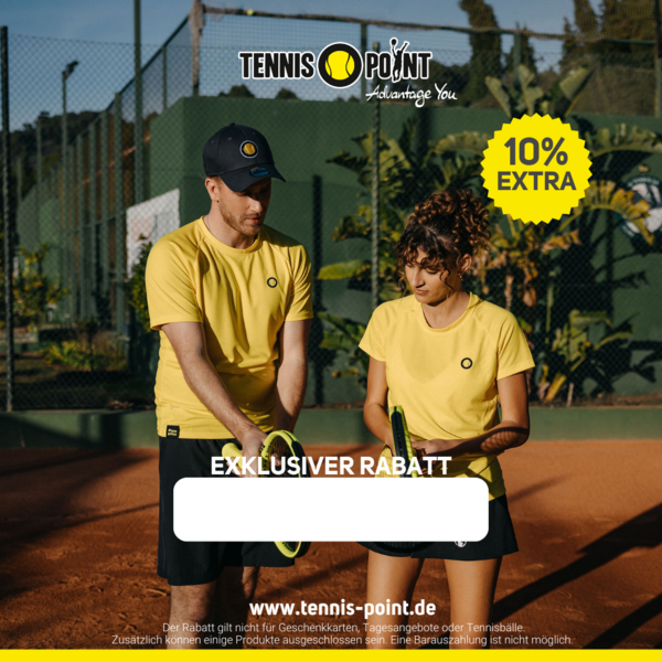 Alle Mitglieder unseres Vereins bekommen bei Tennis-Point mit folgendem Code eine Rabatt von 10% (Einkauf online, als auch vor Ort im Store):